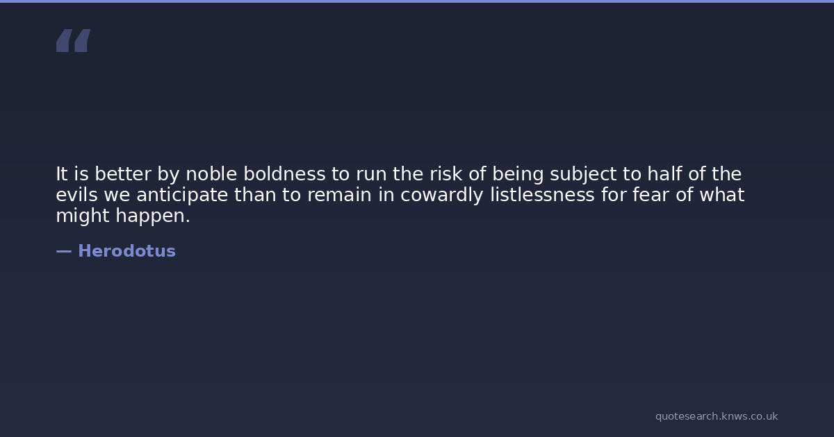 It is better by noble boldness to run the risk of being subject to half of the evils we anticipate than to remain in cowardly listlessness for fear of what might happen.