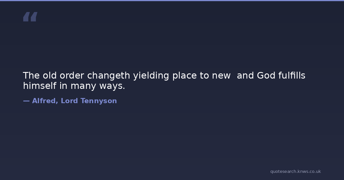 The old order changeth yielding place to new and God fulfills himself in many ways.