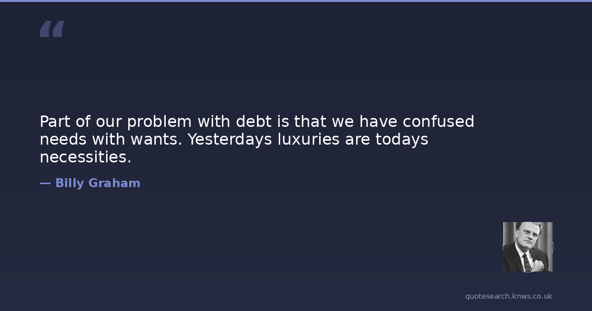 Part of our problem with debt is that we have confused needs with wants. Yesterdays luxuries are todays necessities.