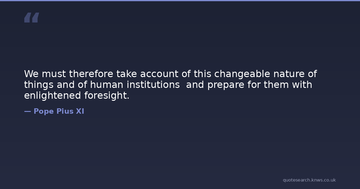 We must therefore take account of this changeable nature of things and of human institutions and prepare for them with enlightened foresight.