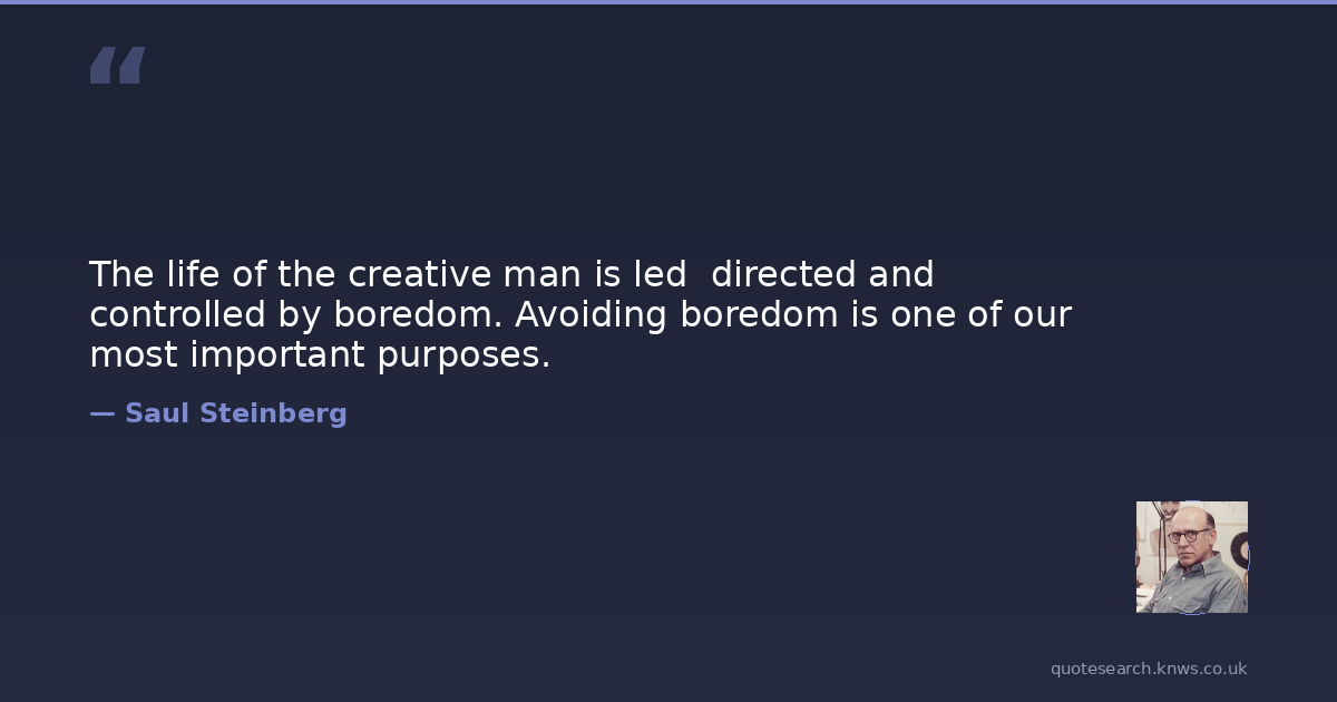 The life of the creative man is led directed and controlled by boredom. Avoiding boredom is one of our most important purposes.
