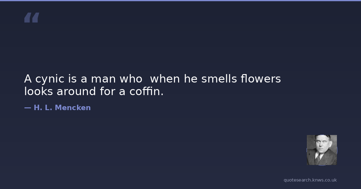 A cynic is a man who when he smells flowers looks around for a coffin.