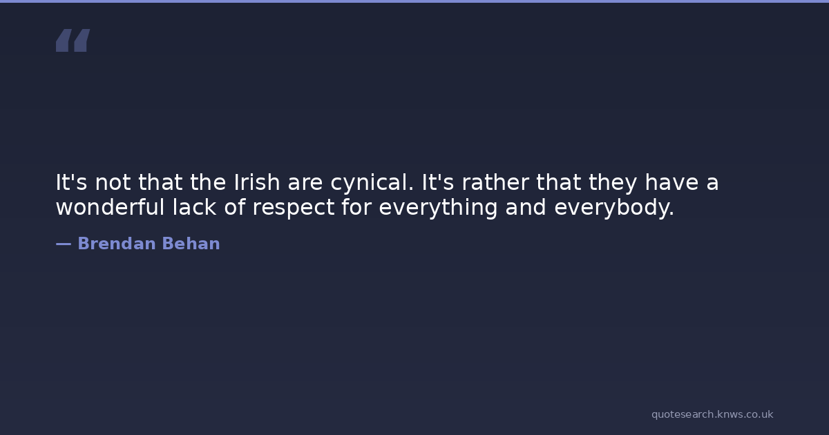 It's not that the Irish are cynical. It's rather that they have a wonderful lack of respect for everything and everybody.