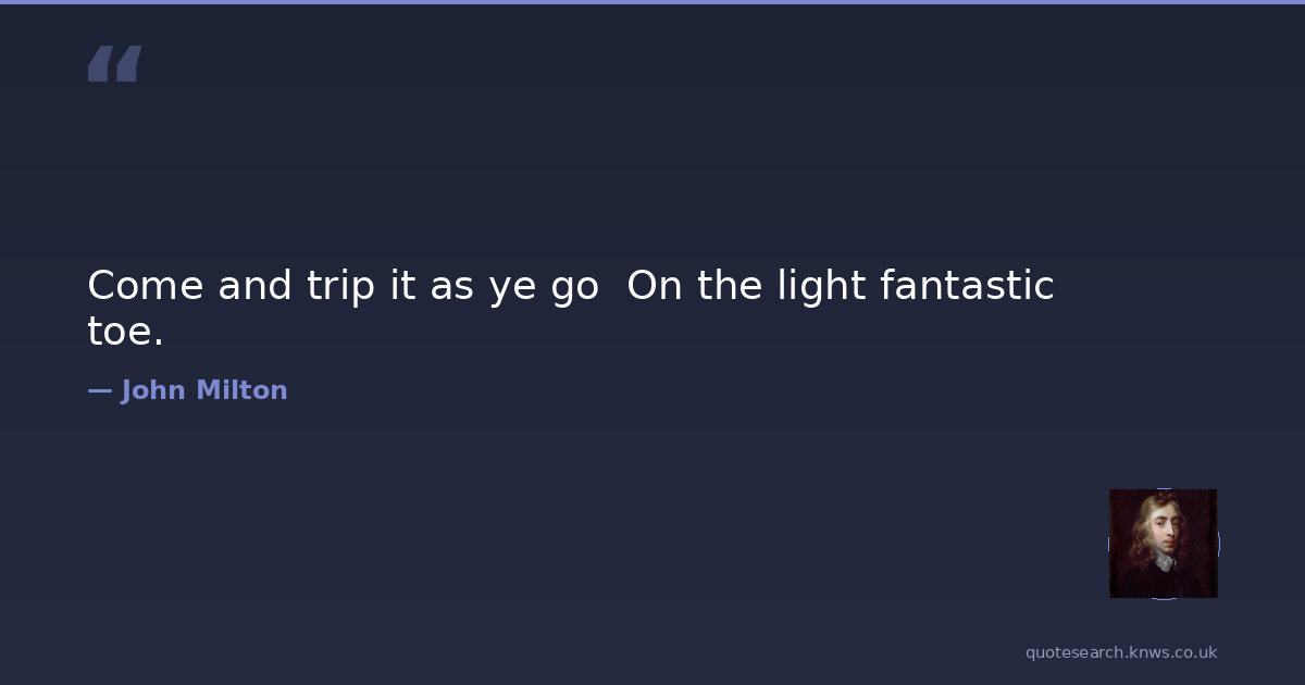Come and trip it as ye go On the light fantastic toe.