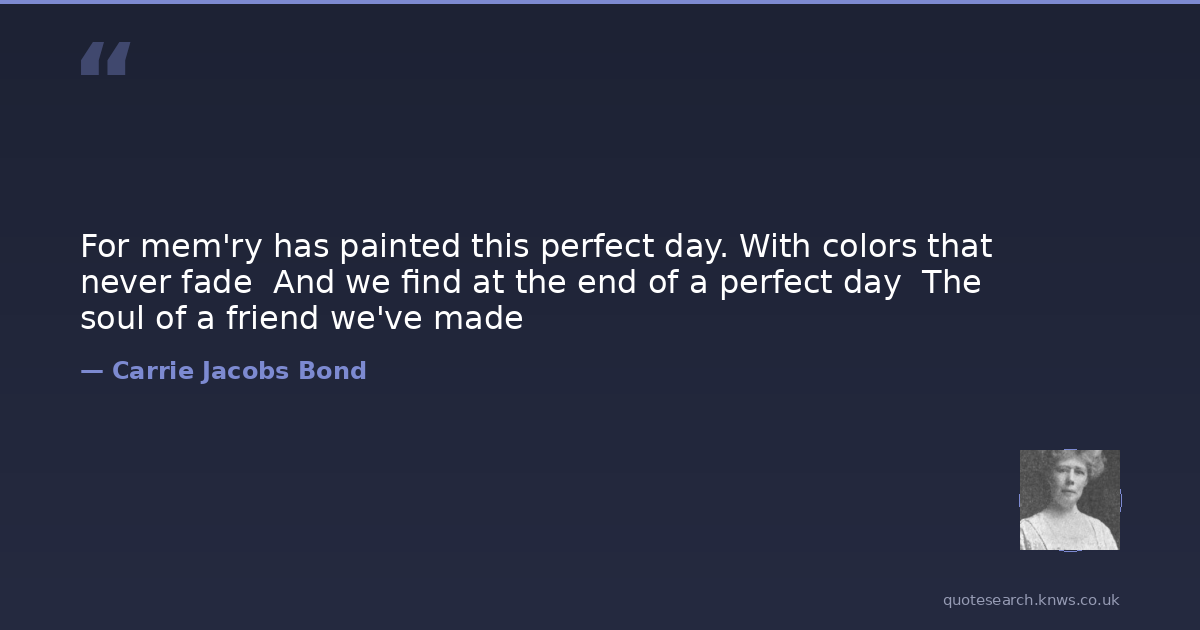 For mem'ry has painted this perfect day. With colors that never fade And we find at the end of a perfect day The soul of a friend we've made