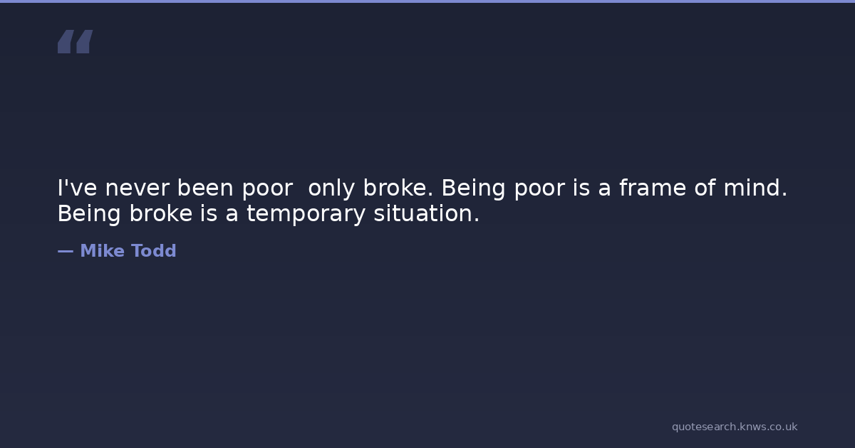 I've never been poor only broke. Being poor is a frame of mind. Being broke is a temporary situation. difficult days Download Image Share on X Share on Facebook Copy Link