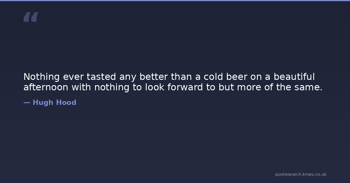 Nothing ever tasted any better than a cold beer on a beautiful afternoon with nothing to look forward to but more of the same.