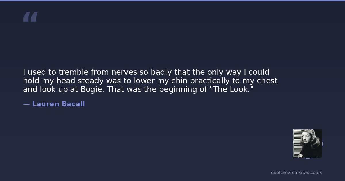 I used to tremble from nerves so badly that the only way I could hold my head steady was to lower my chin practically to my chest and look up at Bogie. That was the beginning of "The Look."