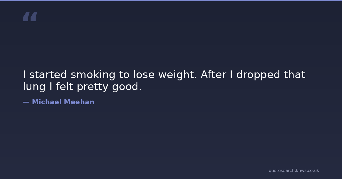 I started smoking to lose weight. After I dropped that lung I felt pretty good. eat drink merry Download Image Share on X Share on Facebook Copy Link