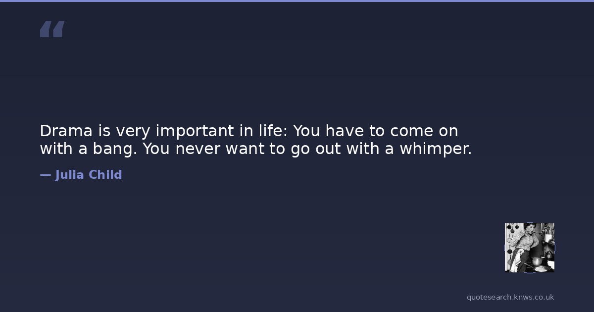 Drama is very important in life: You have to come on with a bang. You never want to go out with a whimper.