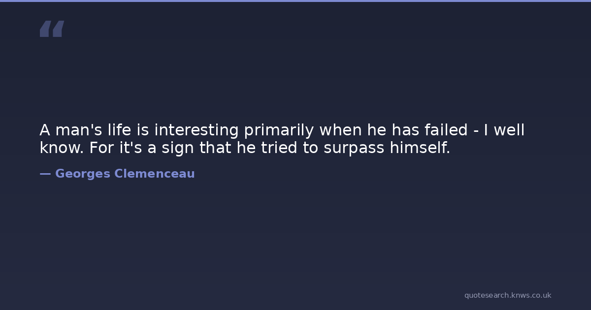 A man's life is interesting primarily when he has failed - I well know. For it's a sign that he tried to surpass himself.