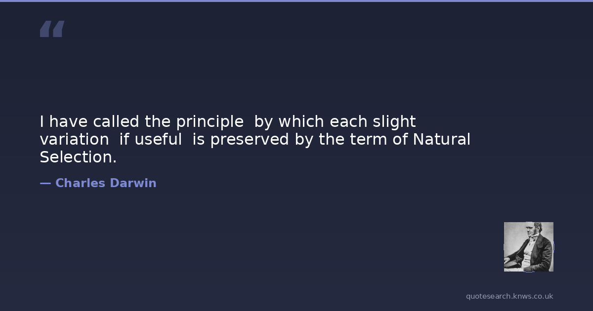 I have called the principle by which each slight variation if useful is preserved by the term of Natural Selection.