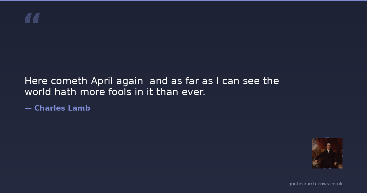 Here cometh April again and as far as I can see the world hath more fools in it than ever.