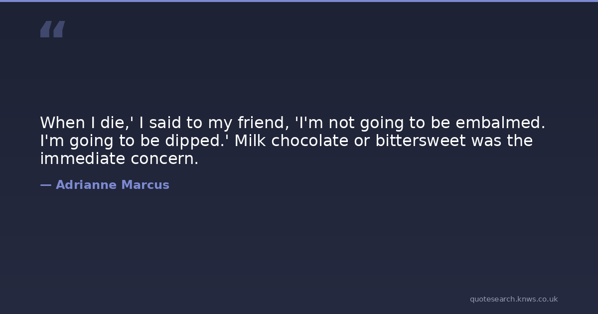 When I die,' I said to my friend, 'I'm not going to be embalmed. I'm going to be dipped.' Milk chocolate or bittersweet was the immediate concern.
