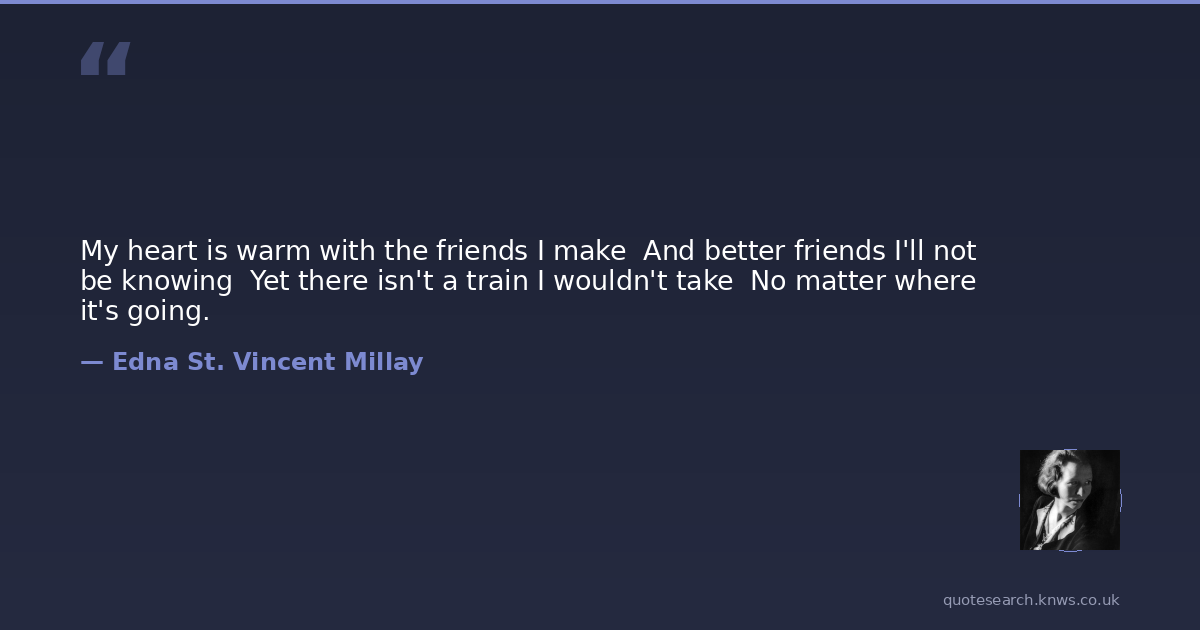 My heart is warm with the friends I make And better friends I'll not be knowing Yet there isn't a train I wouldn't take No matter where it's going.