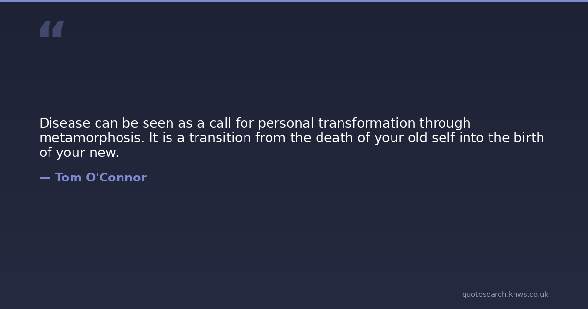 Disease can be seen as a call for personal transformation through metamorphosis. It is a transition from the death of your old self into the birth of your new.