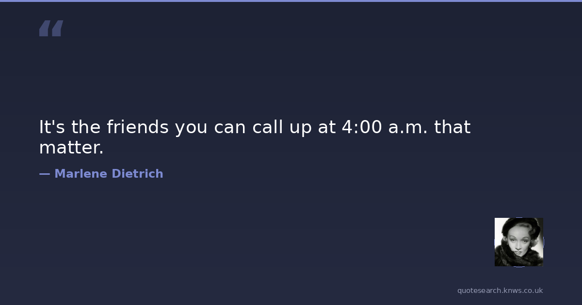 It's the friends you can call up at 4:00 a.m. that matter.