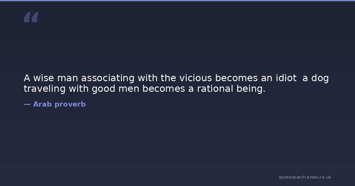 A wise man associating with the vicious becomes an idiot a dog traveling with good men becomes a rational being.