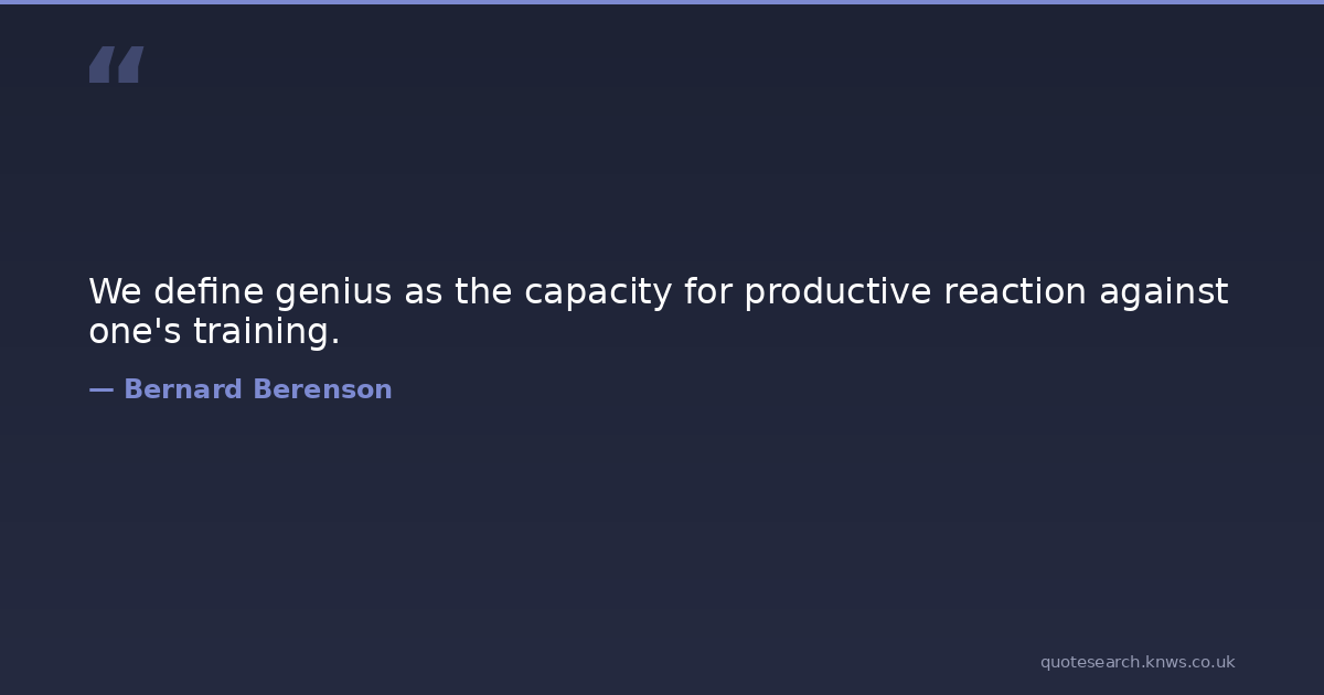 We define genius as the capacity for productive reaction against one's training.