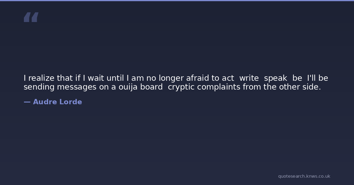 I realize that if I wait until I am no longer afraid to act write speak be I'll be sending messages on a ouija board cryptic complaints from the other side.
