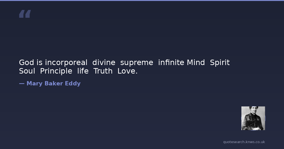 God is incorporeal divine supreme infinite Mind Spirit Soul Principle life Truth Love.