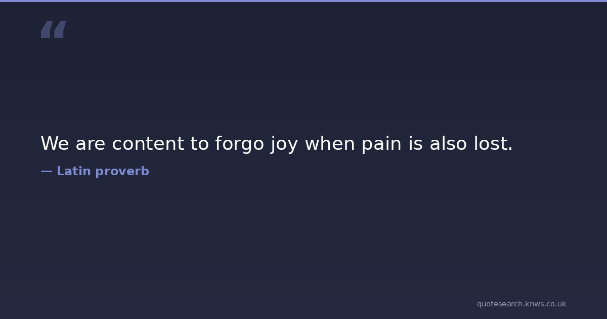 We are content to forgo joy when pain is also lost.
