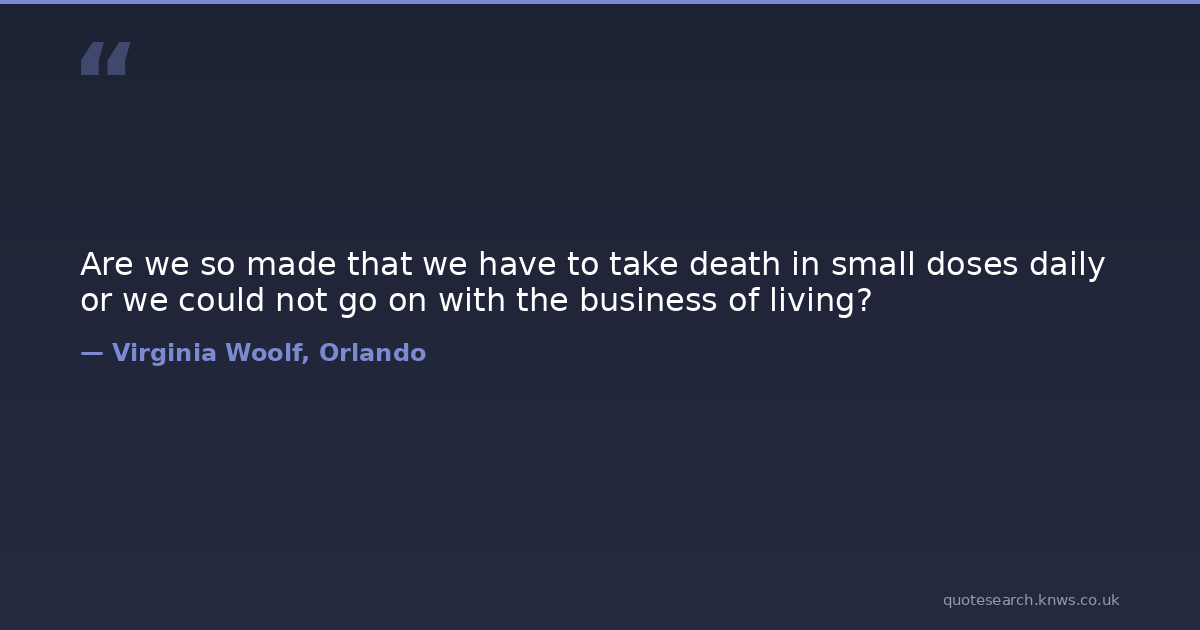 Are we so made that we have to take death in small doses daily or we could not go on with the business of living?