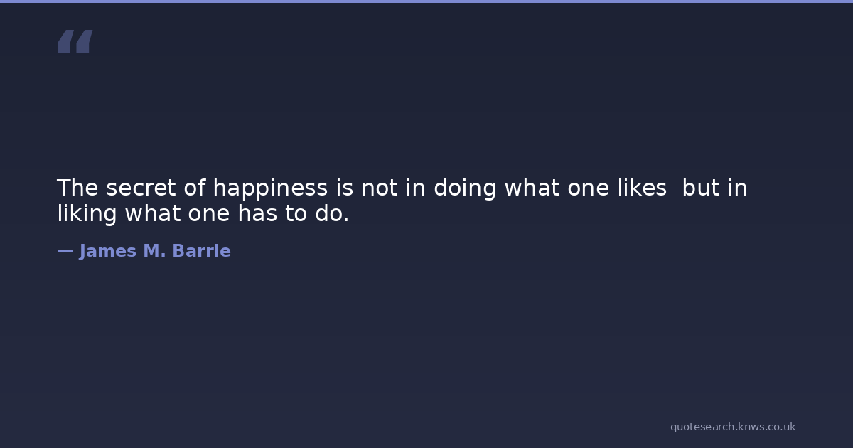 The secret of happiness is not in doing what one likes but in liking what one has to do.