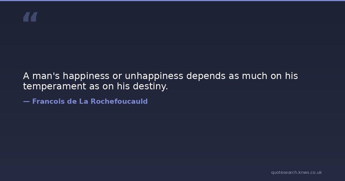 A man's happiness or unhappiness depends as much on his temperament as on his destiny.