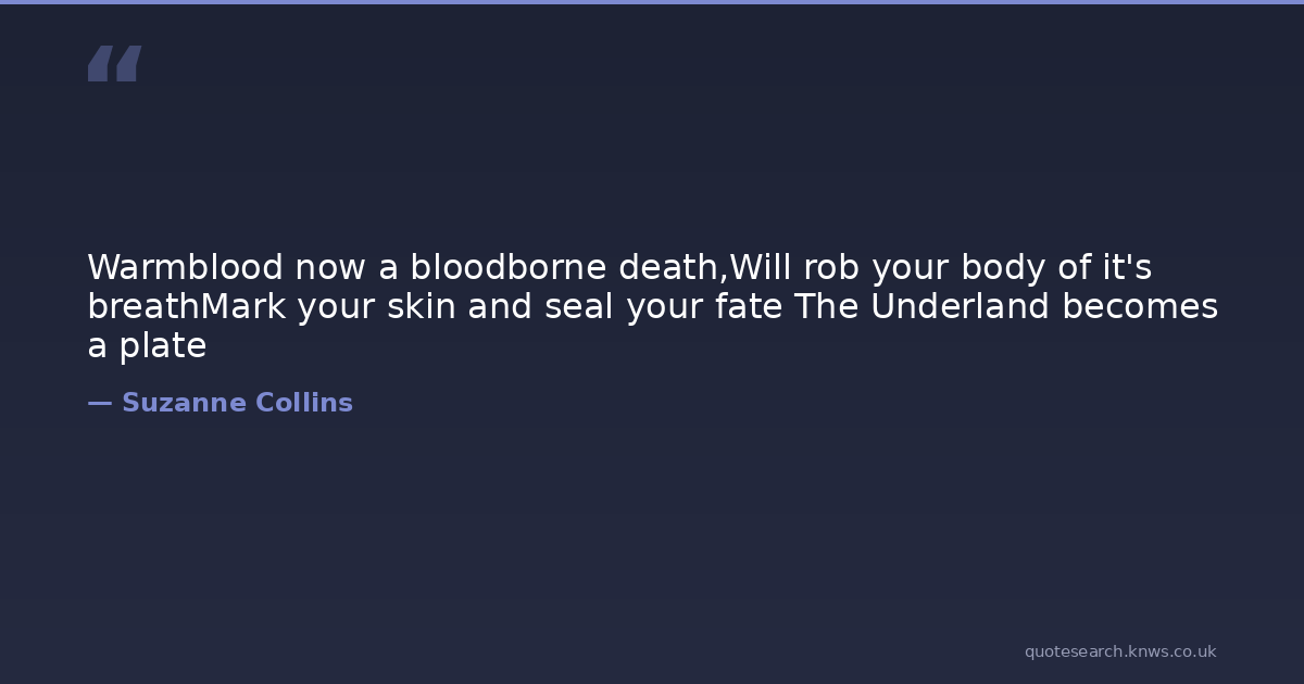 Warmblood now a bloodborne death,Will rob your body of it's breathMark your skin and seal your fate The Underland becomes a plate