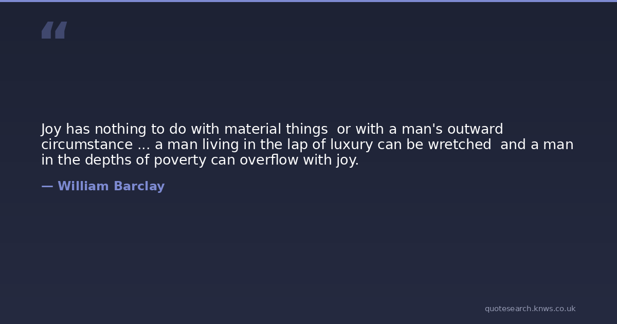 Joy has nothing to do with material things or with a man's outward circumstance ... a man living in the lap of luxury can be wretched and a man in the depths of poverty can overflow with joy.