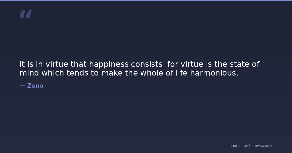 It is in virtue that happiness consists for virtue is the state of mind which tends to make the whole of life harmonious.