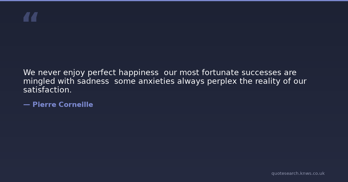 We never enjoy perfect happiness our most fortunate successes are mingled with sadness some anxieties always perplex the reality of our satisfaction.