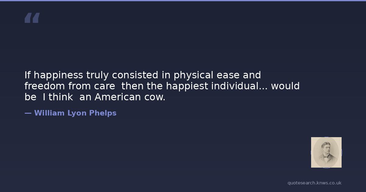 If happiness truly consisted in physical ease and freedom from care then the happiest individual... would be I think an American cow.