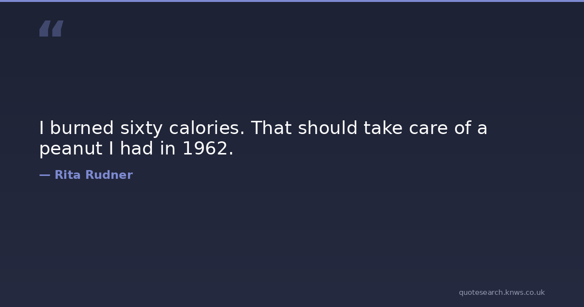 I burned sixty calories. That should take care of a peanut I had in 1962.