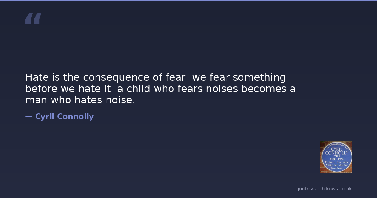 Hate is the consequence of fear we fear something before we hate it a child who fears noises becomes a man who hates noise.