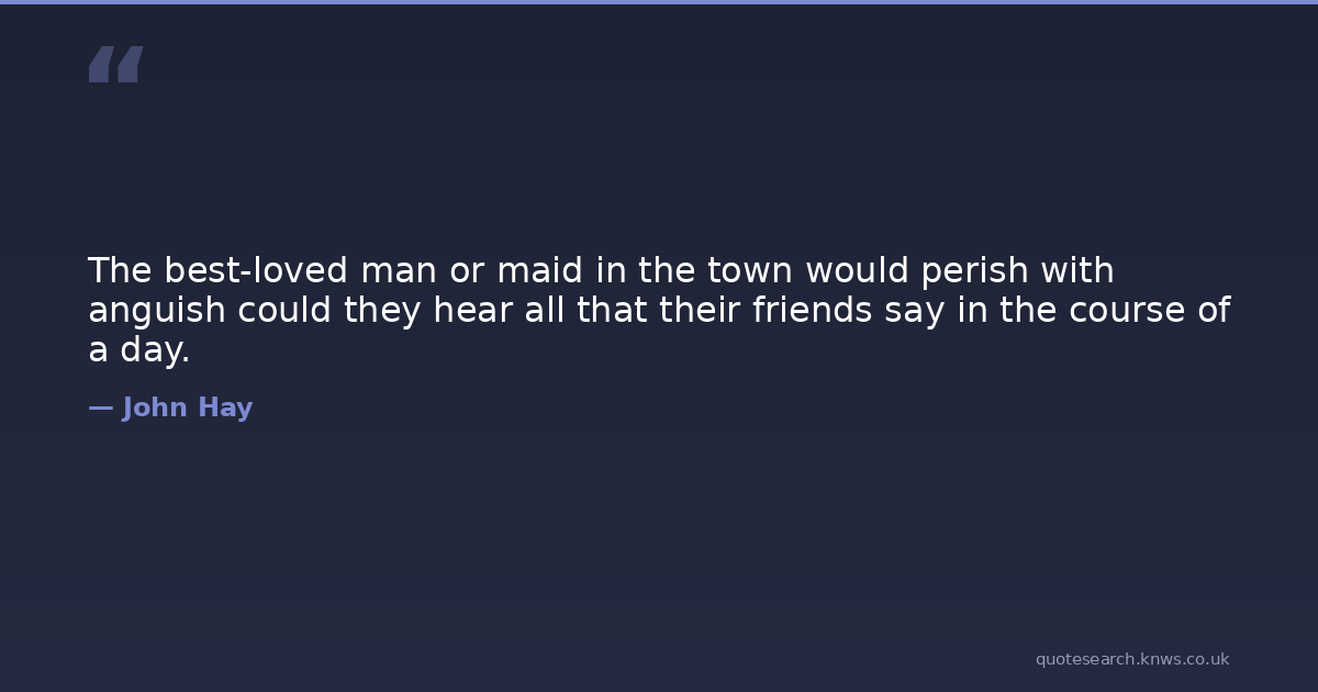 The best-loved man or maid in the town would perish with anguish could they hear all that their friends say in the course of a day.