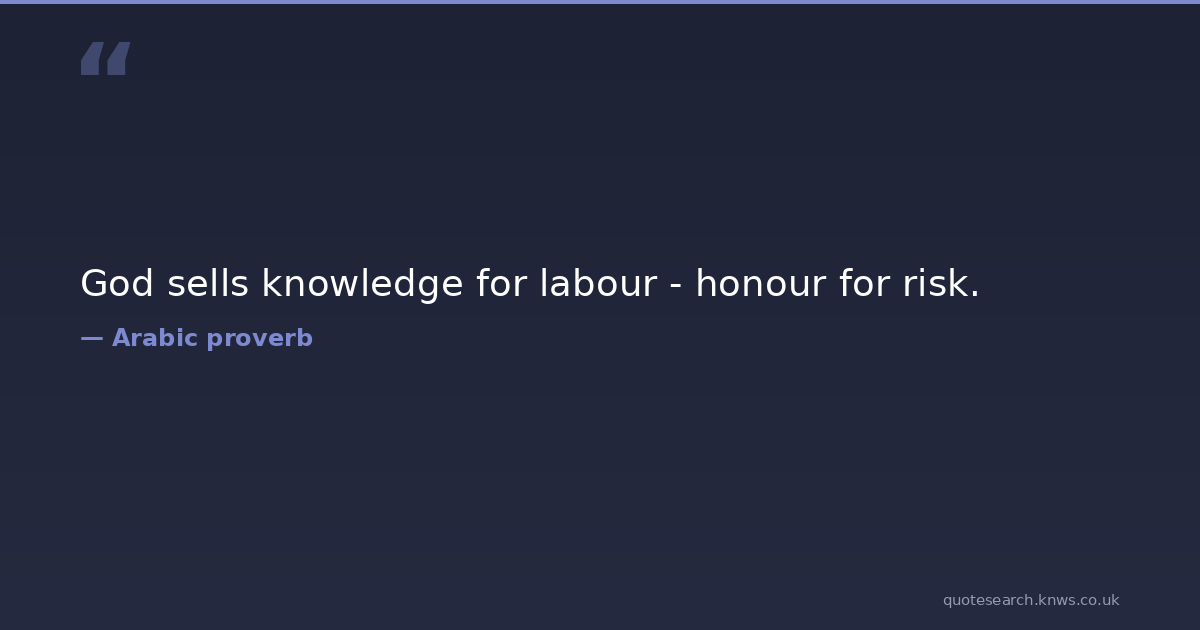 God sells knowledge for labour - honour for risk. honour Download Image Share on X Share on Facebook Copy Link