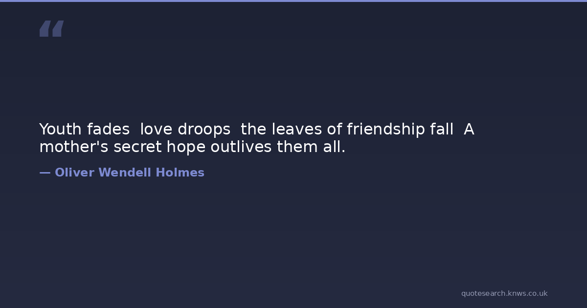 Youth fades love droops the leaves of friendship fall A mother's secret hope outlives them all.