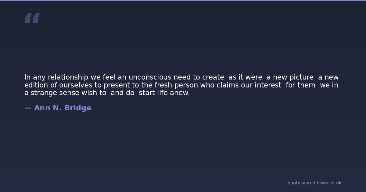 In any relationship we feel an unconscious need to create as it were a new picture a new edition of ourselves to present to the fresh person who claims our interest for them we in a strange sense wish to and do start life anew.