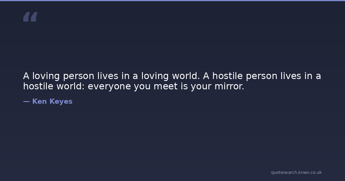 A loving person lives in a loving world. A hostile person lives in a hostile world: everyone you meet is your mirror.