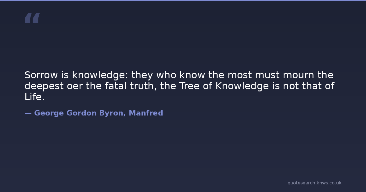 Sorrow is knowledge: they who know the most must mourn the deepest oer the fatal truth, the Tree of Knowledge is not that of Life.