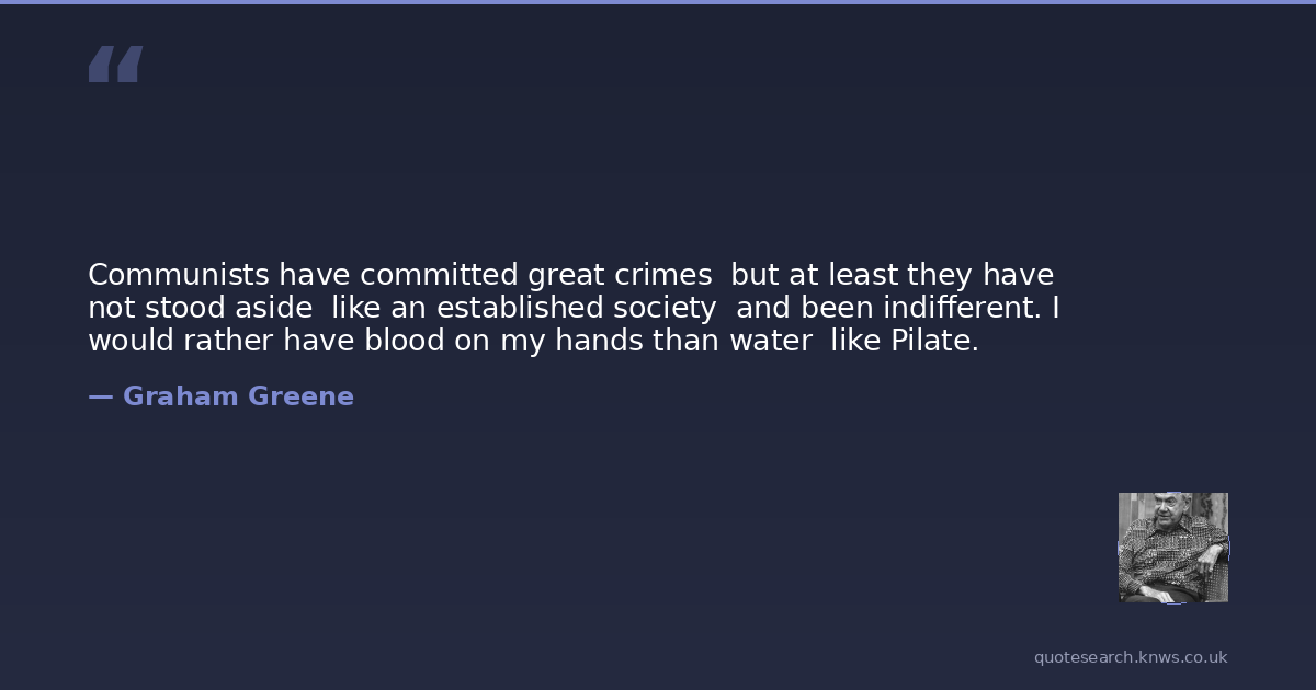 Communists have committed great crimes but at least they have not stood aside like an established society and been indifferent. I would rather have blood on my hands than water like Pilate.