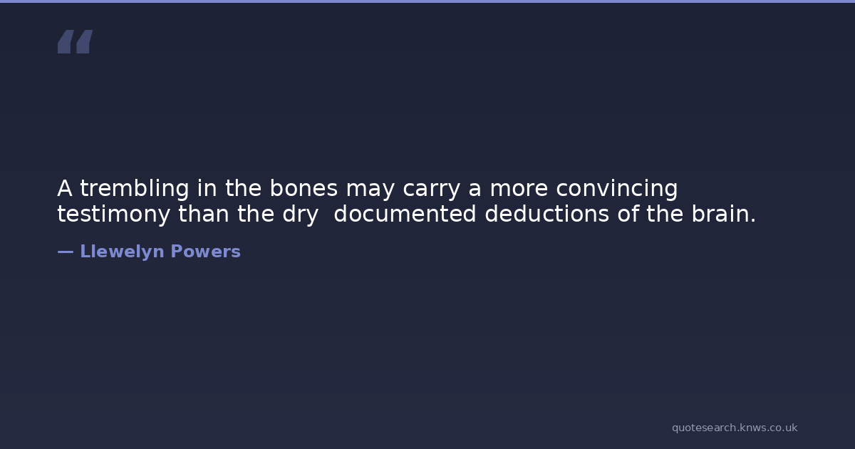 A trembling in the bones may carry a more convincing testimony than the dry documented deductions of the brain. instincts Download Image Share on X Share on Facebook Copy Link