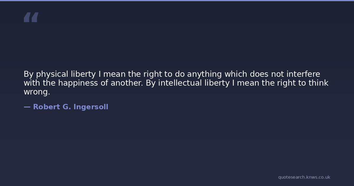 By physical liberty I mean the right to do anything which does not interfere with the happiness of another. By intellectual liberty I mean the right to think wrong.