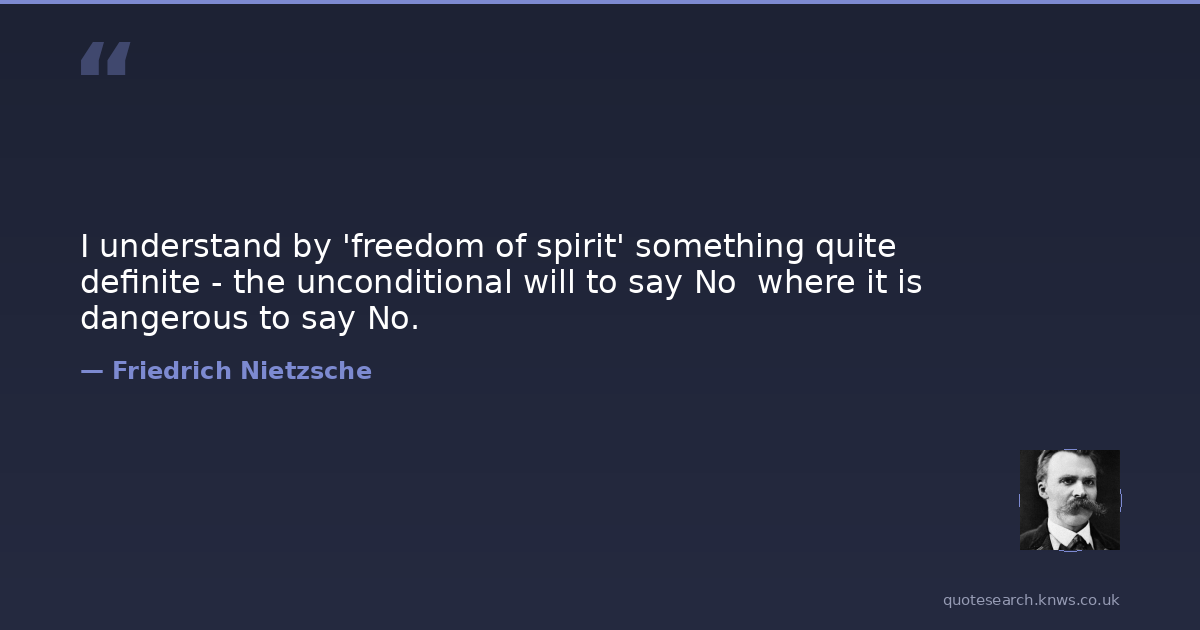 I understand by 'freedom of spirit' something quite definite - the unconditional will to say No where it is dangerous to say No.