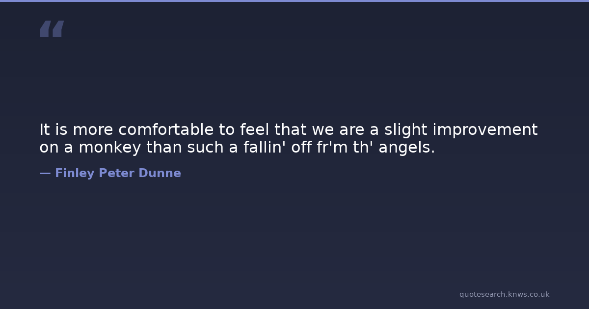 It is more comfortable to feel that we are a slight improvement on a monkey than such a fallin' off fr'm th' angels.