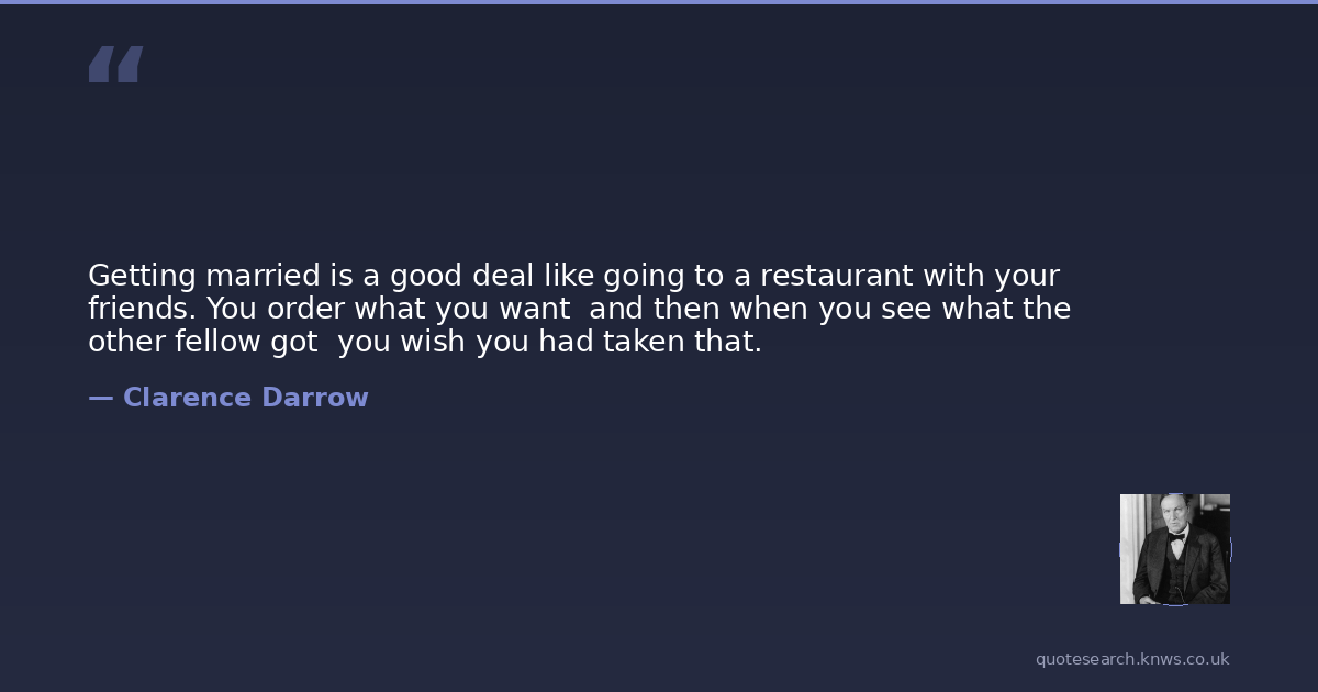 Getting married is a good deal like going to a restaurant with your friends. You order what you want and then when you see what the other fellow got you wish you had taken that.