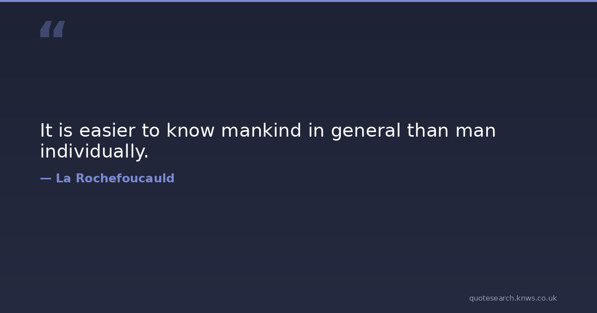 It is easier to know mankind in general than man individually. man Download Image Share on X Share on Facebook Copy Link