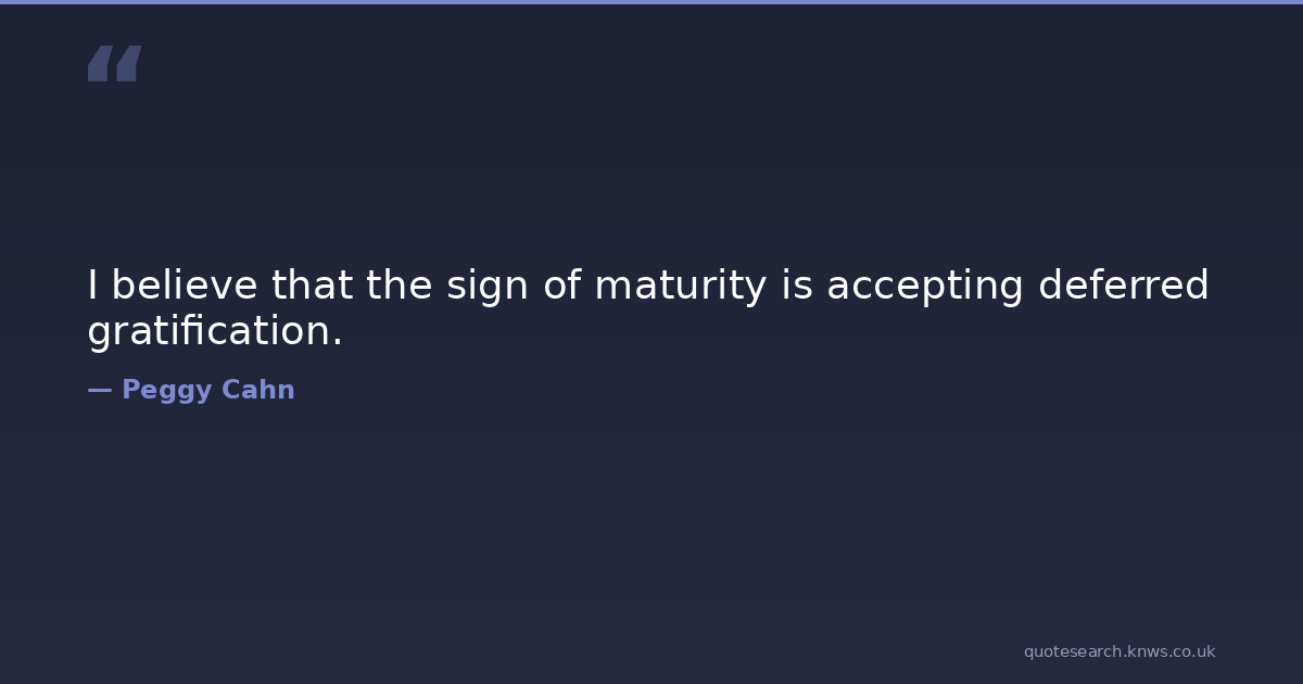 I believe that the sign of maturity is accepting deferred gratification. maturity Download Image Share on X Share on Facebook Copy Link